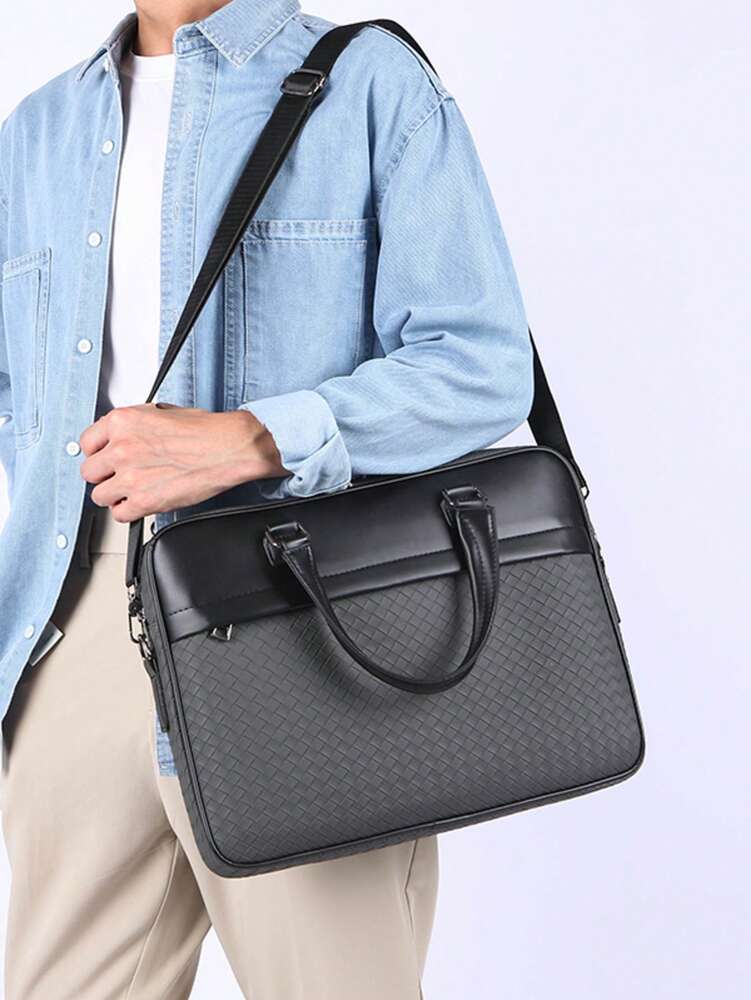 This men's classic briefcase combines durable PU leather with a lightweight design, making it ideal for office and business travel. Its large capacity accommodates laptops and documents effortlessly, while the adjustable strap and secure zipper closure ensure comfort and safety during daily commutes. The elegant grey color and colorful details add a sophisticated touch to professional attire, providing both style and practicality in one refined satchel.