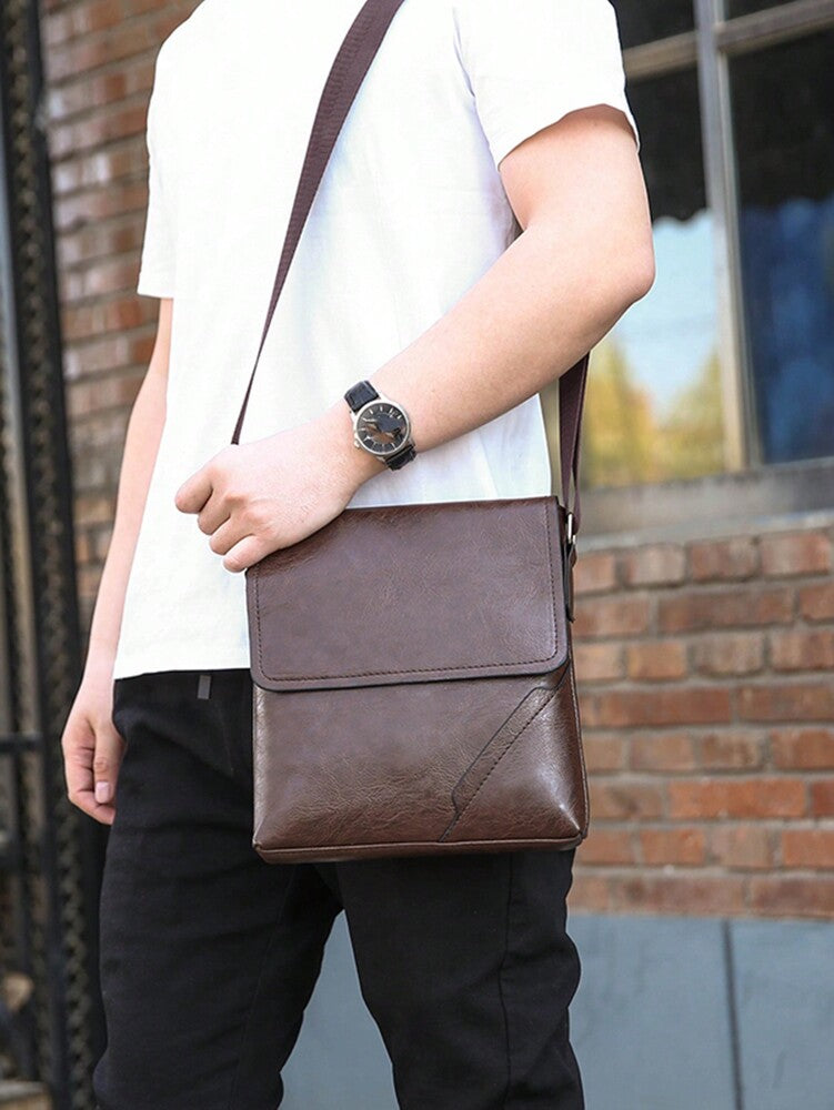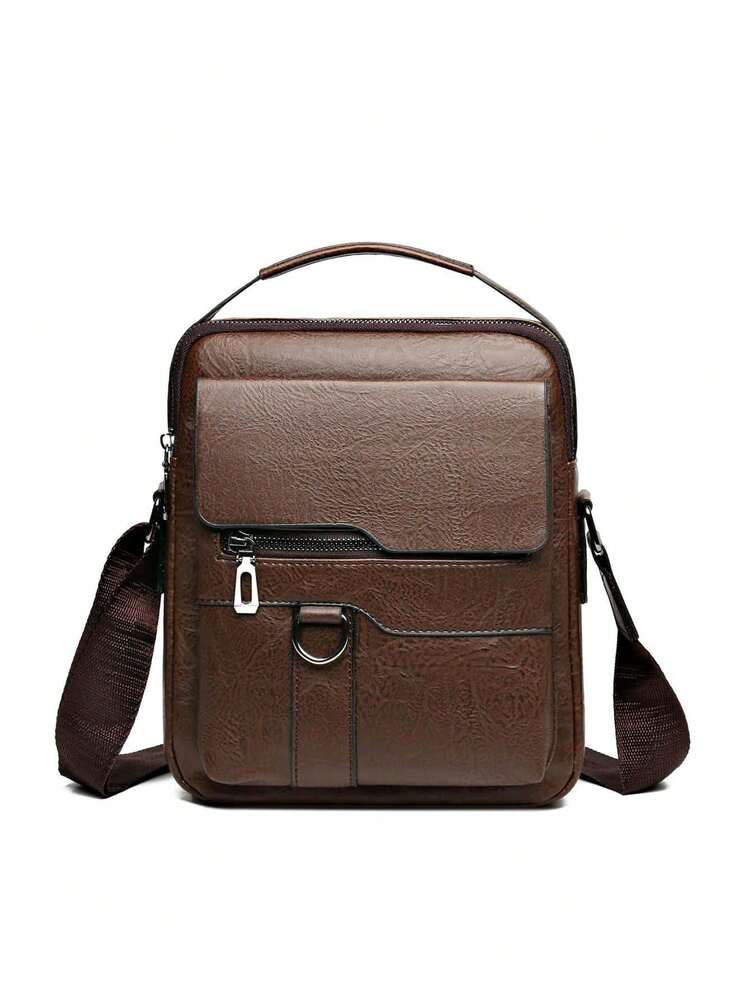 Men's Coffee Color PU Leather Shoulder Messenger Bag Lightweight Business Crossbody Sling Bag Versatile Travel Briefcase Tote Satchel