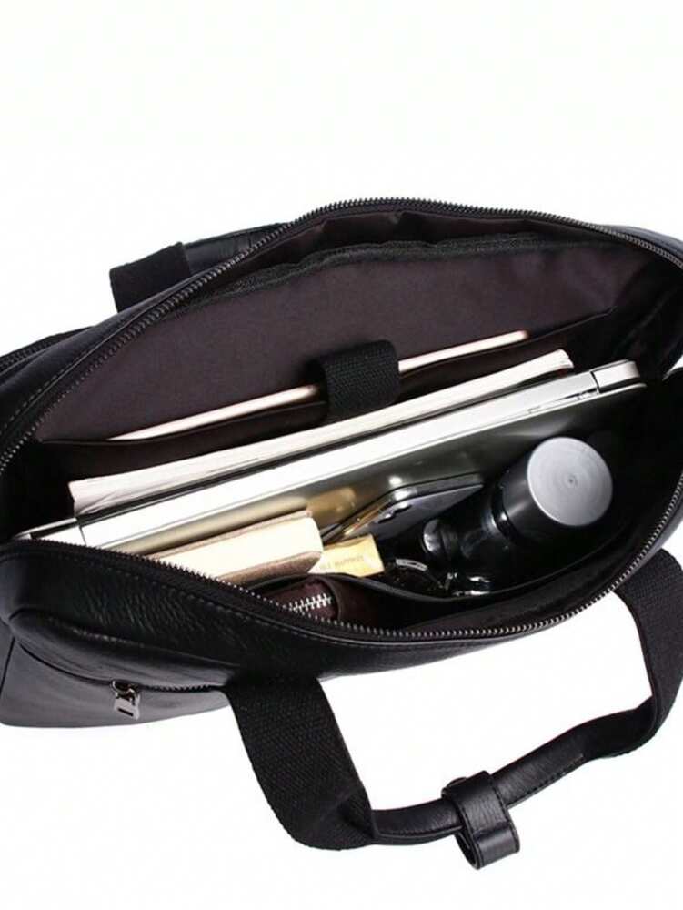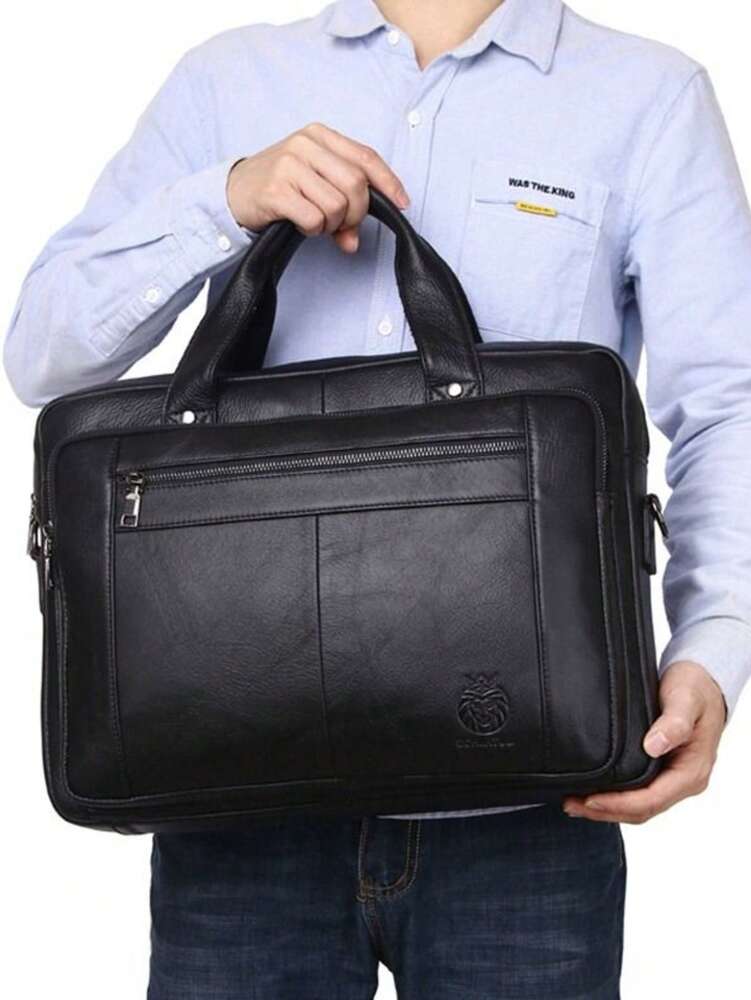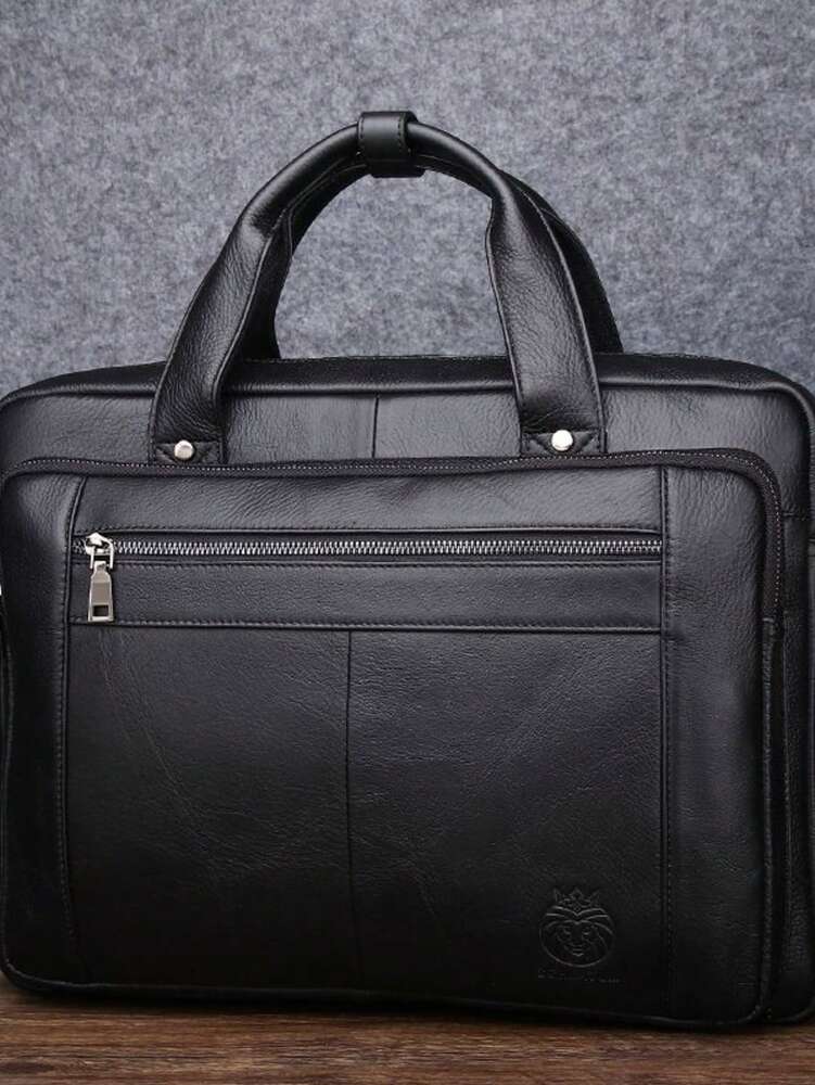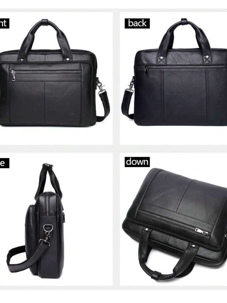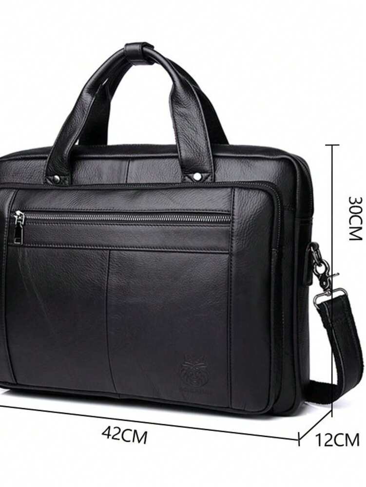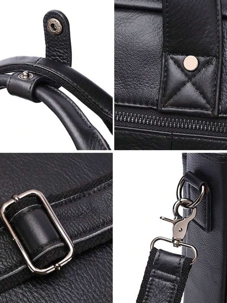 This classic black briefcase combines genuine leather craftsmanship with a timeless design, offering a sophisticated carrying solution for professionals. Its multi-compartment layout ensures organized storage for a 16-inch laptop and essentials, while the secure zipper closure and buckle details enhance durability and style. The adjustable strap allows comfortable handheld or shoulder use, making it ideal for daily office, business, or travel needs. A refined blend of vintage appeal and modern functionality for the discerning professional.
