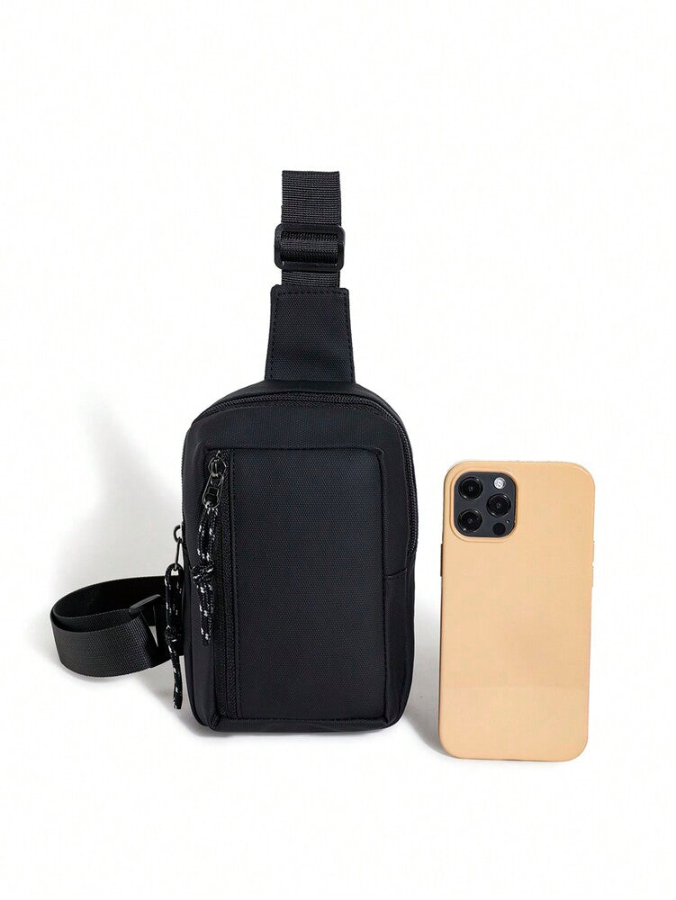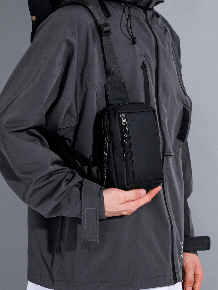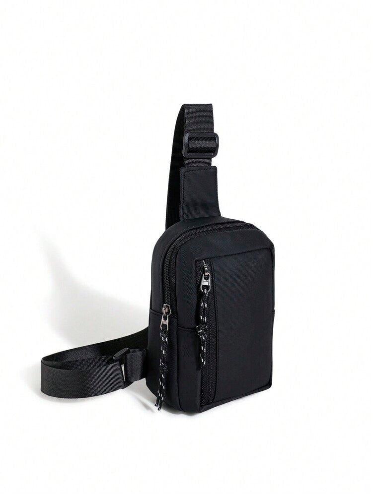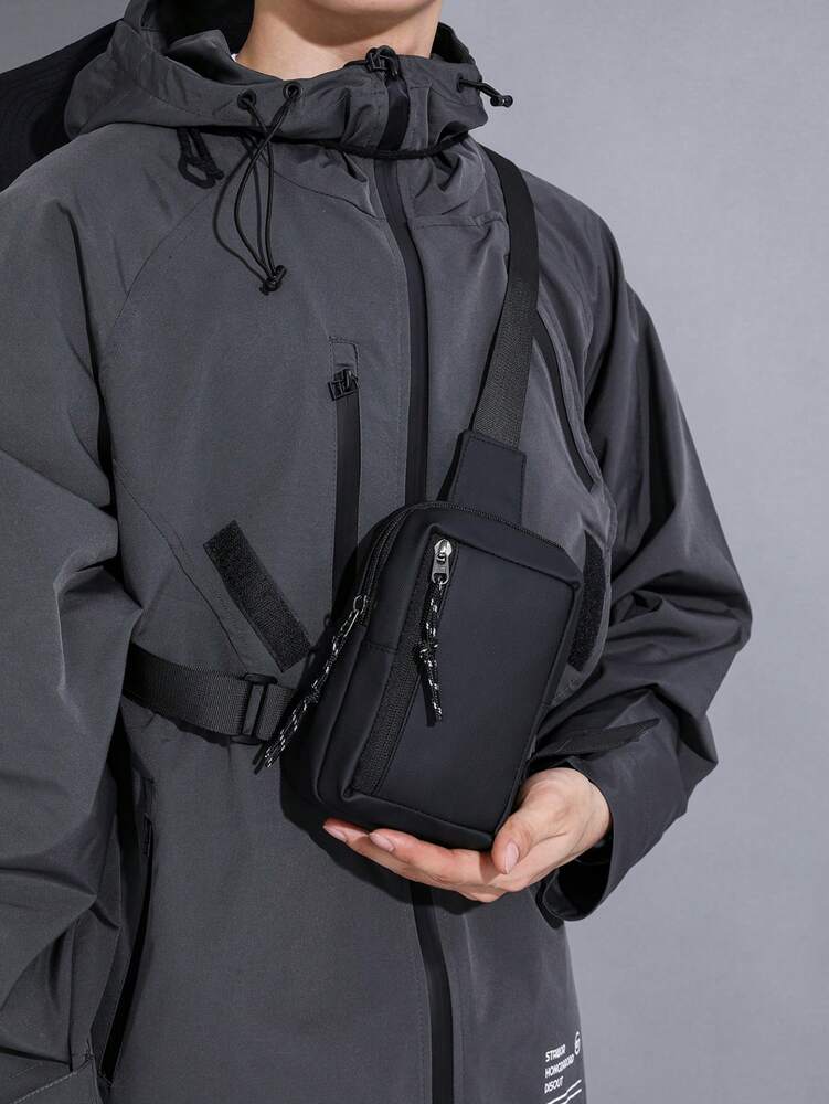 Men's Minimalist Chest Bag Black Sling Crossbody Bag Versatile Small Backpack Sports Leisure Waist Pack Travel Business Outdoor Casual