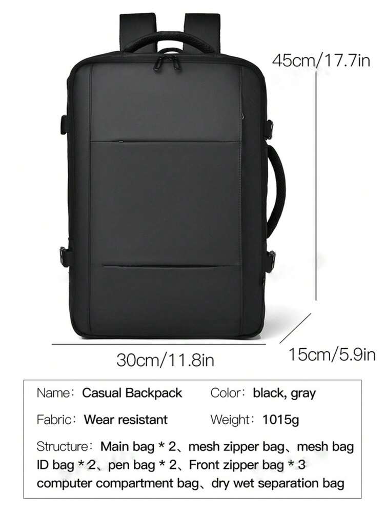 This men's multifunctional laptop backpack combines practicality with durability, crafted from 100% polyester polyamide for long-lasting use. Its large capacity design features a wet and dry separation compartment, ideal for organizing essentials during work, school, or overnight travel. The secure zipper closure ensures belongings stay safe, while the plain multicolor pattern offers a versatile casual style suitable for daily use. Perfect for professionals and travelers seeking reliable and organized storage in one sleek carryall.