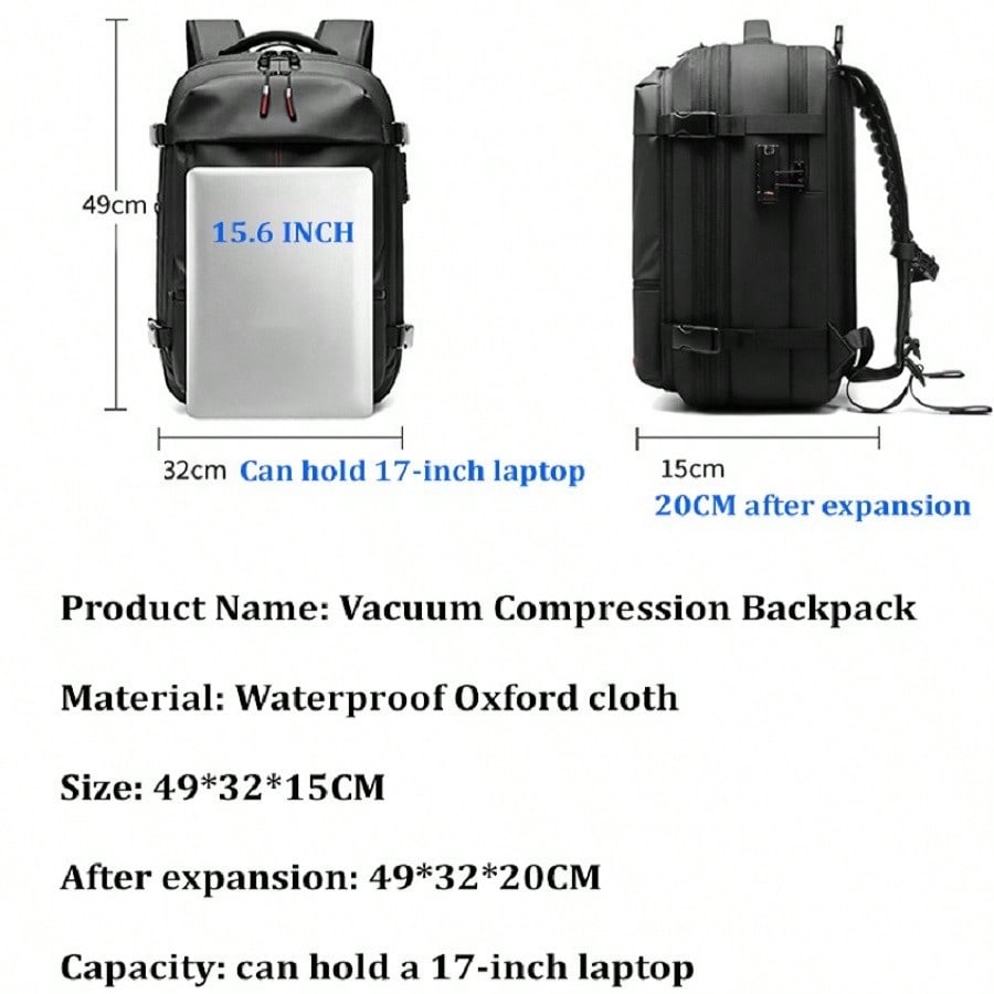 Men's Travel Backpack 17 Inch Laptop Bag Compression Backpack Business Large Capacity School Bag Hiking Gym Sports Travel Casual Tote