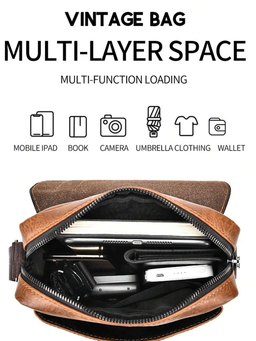 This men's satchel bag combines vintage style with practical design, crafted from durable, waterproof PU leather in a rich coffee brown. Its mini size offers multiple compartments to securely organize essentials, making it ideal for office, travel, hiking, or work. The adjustable strap ensures a comfortable fit, while the flap closure provides easy access and protection. Lightweight yet spacious, this crossbody waist bag is perfect for students and professionals who need a reliable, stylish carry solution on the go.